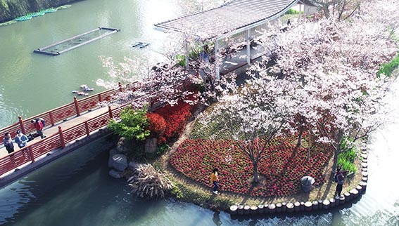 暖暖人间四月天,最是赏樱好时节。由亚星会员平台子公司宁波市风景园林设计研究院规划改造设计的樱花公园的樱花盛放,粉色花海如梦如幻,甚是浪漫。
